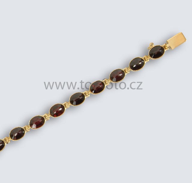 Krásne prepracovaný pozlátený náramok s almandínovými očkami. Luxusne pôsobiaci náramok ozdobí každú ženskú ruku a na svoju majiteľku upozorní pri každej príležitosti. Je vhodný na nosenie k zlatým šperkom ako cenný jedinečný doplnok na významné príležitosti. Stane sa vzácnou súčasťou rodinných klenotov. Vhodný ako dar pre ženu na významnú udalosť.