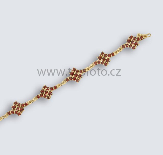 Krásny náramok so zaujímavým vzorom s českými granátmi. Je vhodný na nosenie k zlatým šperkom. Stane sa vzácnou súčasťou rodinných klenotov. Vhodný ako dar pre mladšie alebo zrelé ženy na narodeniny alebo k jubileu.