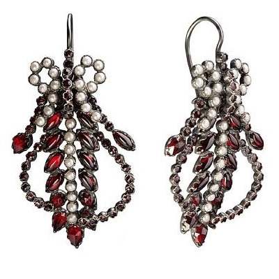 Mimoriadne dizajnovo náročne spracované luxusné náušnice s českým granátom, perlami a almandínom. Je vhodná ako nádherný a veľmi cenný dar._ _ _ _ _