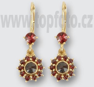Veľmi pekné visiace náušnice kvetovaného dizajnu s českým granátom. Hodia sa k všetkým vekovým kategóriam a osviežia vzhľah každej ženy. Vhodné ako hodnotný darček na významnú príležitosť, na výročie pre ženu alebo darček pre mamu. Sú dobre nositeľné a kombinovateľné so zlatými šperkami.