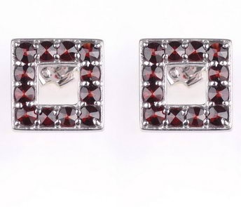 Krásne strieborné štvorcové náušnice s českým granátom.