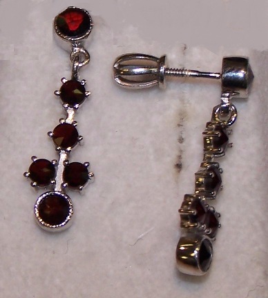 Krásne strieborné visiace náušnice s tvavočervenými polodrahokanmi z českého granátu.