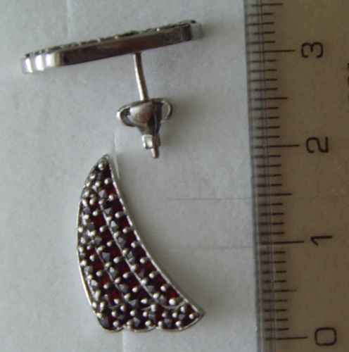 Krásne vejárovité náušnice s českým granátom. Sú vytvorené v tradičnom dizajne a nádherne pristanú každej žene. Sú vhodným darčekom na výročie, narodeniny či na meniny.