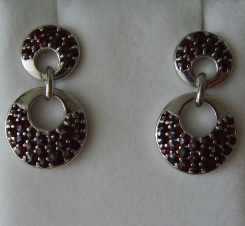 Nádherné, dvojkruhové, luxusné náušnice s českým granátom. Výnimočne krásny dizajn náušníc je vhodný ako vzácny, krásny dar pre všetky vekové kategórie žien, napr. na narodeniny či jubileum. Sú dobre kombinovateľné s inámi šperkami a určite potešia každú ženu či slečnu.