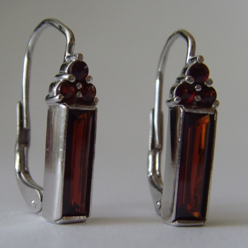 Veľmi pekné spracované obdĺžnikové náušnice s českým granátom a almandínom.