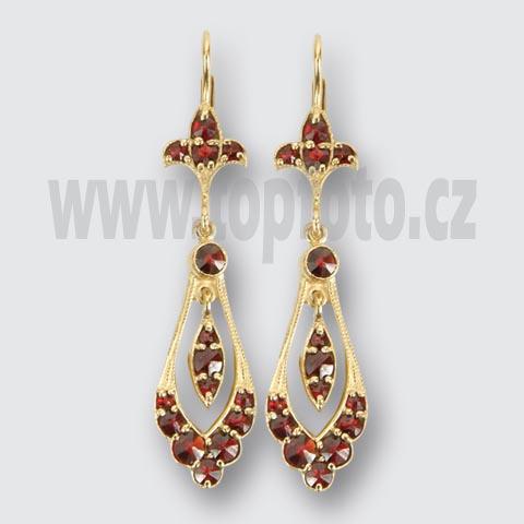 Krásne luxusné visiace náušnice s českým granátom a náročným dizajnom.