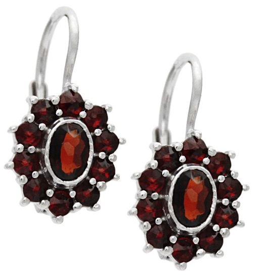 Krásne visiace náušnice s almandínom a českým granátom. Majú tradičný príjemný dizajn a pristanú každej žene. Budú patriť ku krásnym kúskom vo vašej šperkovnici. Vhodný ako hodnotný darček na výročie pre ženu, darček pre mamu alebo napríklad ako dar pre starú mamu.