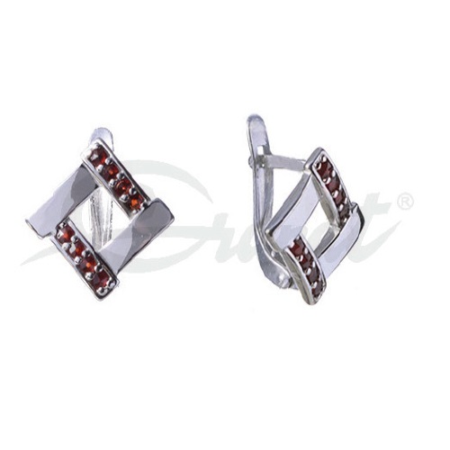 Moderný dámsky šperk, náušnice so vzorom štvorca s českým granátom. Vhodné ako hodnotný darček na narodeniny, výročie pre ženu či darček pre mamu.