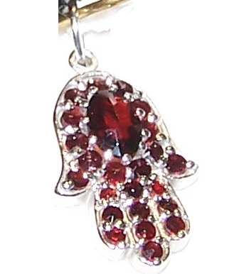 Nádherný prívesok - amulet Ruka Fatimy, s českými granátmi.