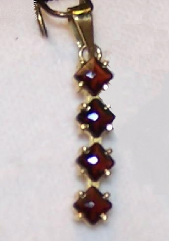 Krásny, menší,  visiaci prívesok s almandínom. Je vhodný aj na každodenné nosenie pre každú ženu všetkých vekových kategórii. Krásne ozdobí dekolt. Odporúčame ako darček k príležitostiam ako sú narodeniny. Hodí sa ako ozdoba na zlatú retiazku.