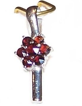 Krásny menší prívesok s českým granátom s tradičným kvetovaným vzorom v strede.
