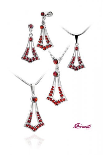Krásny prívesok so zaujímavým dizajnom vykladaný českými granátmi. Vhodný pre každú ženu všetkých vekových kategórii, napr. ako originálny darček na narodeniny či meniny. Je vhodný aj na každodenné nosenie. Hodí sa ako ozdoba na striebornú retiazku alebo retiazku z bieleho zlata.