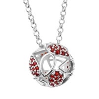 Krásny strieborný prívesok guľa s brúsenými českými granátmi.