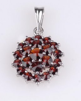 Strieborný kruhový prívesok s českými granátmi. Krásna práca, nádherne ukáže na striebornej retiazke. Poteší každú ženu. Je originálnym darčekom napr. na narodeniny alebo meniny.