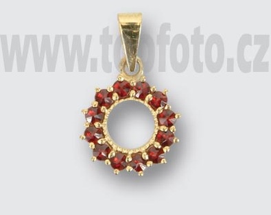 Pozlátený prívesok kruhového tvaru s českými granátmi. Vhodný pre každú ženu všetkých vekových kategórii, napr. ako originálny darček na narodeniny. Je vhodný aj na každodenné nosenie. Hodí sa ako ozdoba na zlatú retiazku.