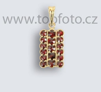 Ozdobný prívesok v tvare obdĺžnika vykladaný českými granátmi. Zaujímavý kúsok do vašej šperkovnice. Vhodný pre každého, napr. ako originálny darček na narodeniny alebo ako dar k meninám. Hodí sa na zlatú retiazku.