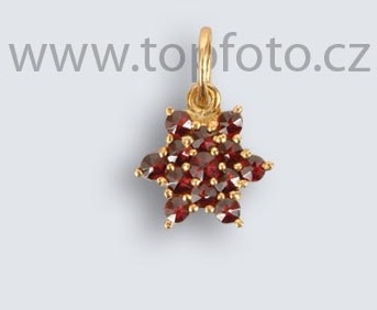 Pozlátený prívesok v tvare hviezdy s českými granátmi. Zaujímavý kúsok do vašej šperkovnice. Vhodný pre každú ženu, napr. ako originálny darček na narodeniny, darček k 18 narodeninám či ako darček k meninám. Poteší a pobaví každé oko. Hodí sa na zlatú retiazku.