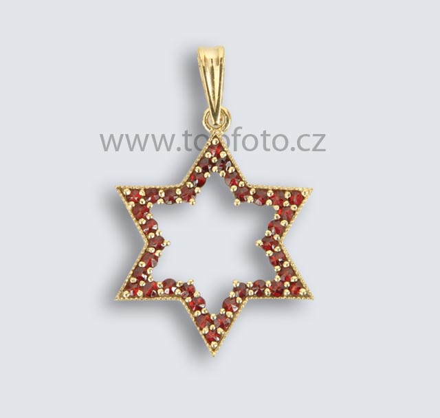 Nádherný prívesok s českým granátom s dizajnom hviezdy. Krásna práca. Je vhodná ako zaujímavý a cenný dar pre všetky vekové kategórie žien, dar na výročie, darček pre mamu či ako dar na narodeniny. Nosí sa na zlatú retiazku.