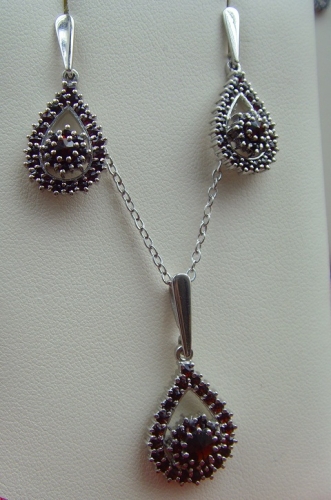 Pekne spracovaný prívesok s českým granátom a almandínom. Pôsobia klasickým dojmom. Hodí sa všetkým vekovým kategóriam a osvieži vzhľad každej ženy. Je vhodný ako darček na významnú príležitosť, na výročie pre ženu alebo darček pre mamu. Je dobre nositeľný a kombinovateľný s inými šperkami.