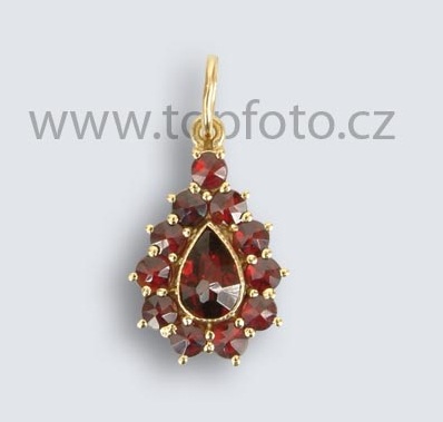 Krásny visiaci prívesok s českým granátom a nádherne spracovaným almandínovým okom v strede. Vhodný ako zaujímavý na výročie pre slečnu, ženu, darček pre mamu alebo napríklad ako dar pre starú mamu.