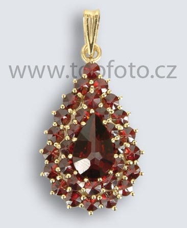 Nádherný visiaci prívesok s českým granátom a nádherne spracovaným almandínovým okom v strede. Krásna umelecká práca prevedená do šperku. Odporúčame ako zaujímavý dar na k jubileu, ako darček pre mamu alebo ako dar na Valentína pre vašu partnerku. Hodí sa na zlatú retiazku.
