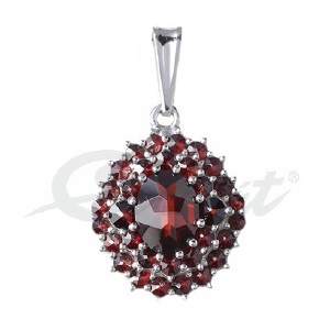 Prívesok zo striebra s českými granátmi. Pekný visiaci kúsok do vašej šperkovnice. Vhodný pre dámu ako originálny darček na narodeniny alebo výročie. Poteší a zaujme.
