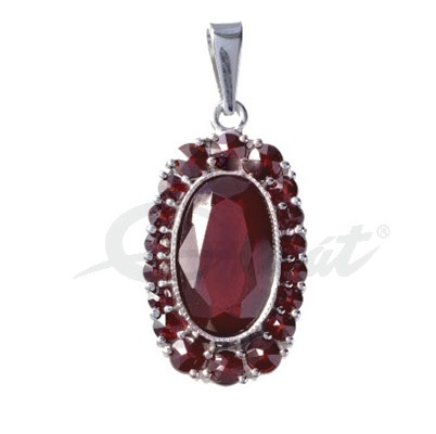 Prívesok zo striebra s českými granátmi a veľkým almandínom v strede. Pekný a výrazný kúsok do šperkovnice. Vhodný pre dámu ako originálny darček na narodeniny alebo výročie. Poteší a zaujme.
