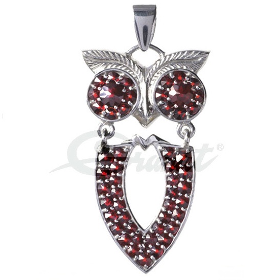Krásny prívesok v tvare sovy osadený almandínom. Zaujímavý a milý kúsok do vašej šperkovnice. Vhodný pre každú ženu ako originálny darček na narodeniny či dar k meninám. Poteší a zaujímavé prevedenie pobaví každé oko. Hodí sa na retiazku alebo ako ozdoba na náramok.