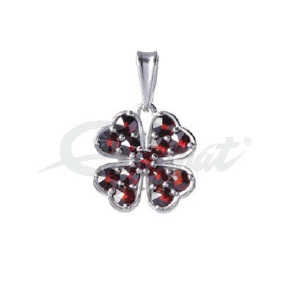 Strieborný prívesok v tvare štvorlístka s českými granátmi. Zaujímavý kúsok "štvorlístok pre štastie" do vašej šperkovnice. Vhodný pre každú ženu, napr. ako originálny darček na narodeniny, darček k 18 narodeninám. Poteší a zaujímavé prevedenie pobaví každé oko. Hodí sa na zlatú retiazku alebo ako ozdoba na náramok.