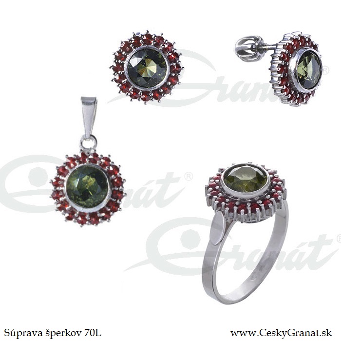 Prsteň zo striebra s vltavínom a českým granátom. Vytvorený je ručne z brúsených kameňov a spĺňa náročné požiadavky na šperk. Je vhodný pre každú ženu ako dar k sviatku.